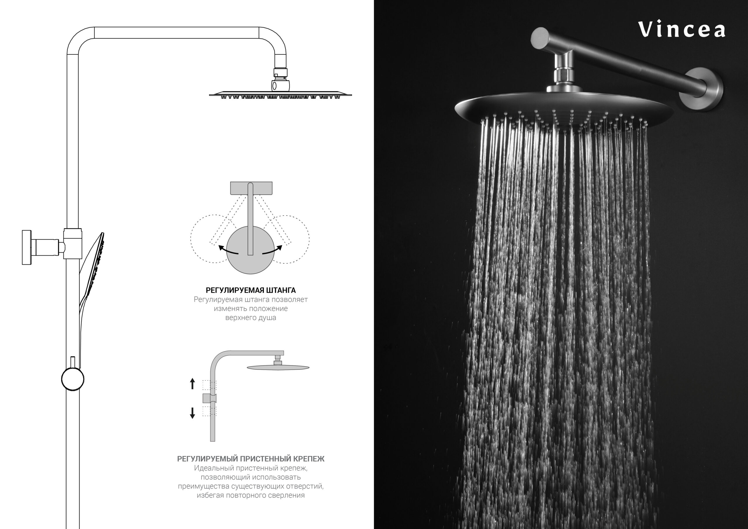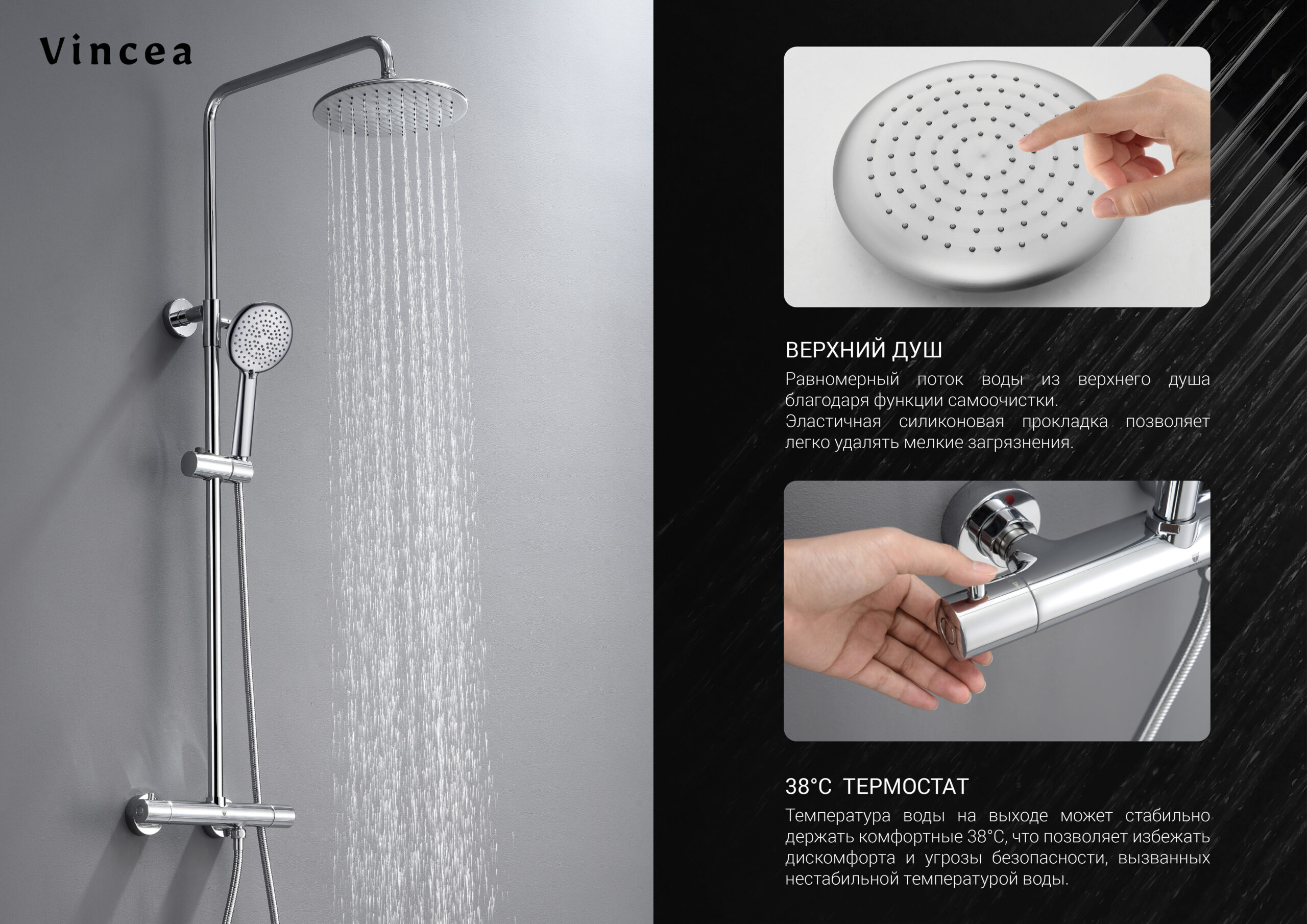 Инструкция для товара Душевая стойка Vincea Esse VSFS-1E0TCH с термостатом хром